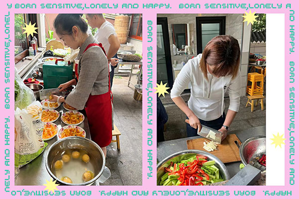 民以食為天,制作精美的菜肴,往往能夠給人帶來美好的享受、愉悅的心情。本次活動采取分工合作,共同制作拿手菜式。大家有序地洗菜、切菜、配菜、燒火、烹飪,通過所有成員的密切配合,各顯神通使出渾身解數,紛紛拿出自己的看家本領,有條不紊地展現自身技藝才能。經過小伙伴們的通力配合,一道道美食從靈巧的手里“脫穎而出”,色香味俱全。隨著一盤盤的食材不斷上桌,大家已經按捺不住心中的小騷動,減肥早已拋諸腦后,只想盡快享受這人間美味,數十種菜品,邊吃邊聊,顏值與味蕾齊飛,畫面十分溫馨。